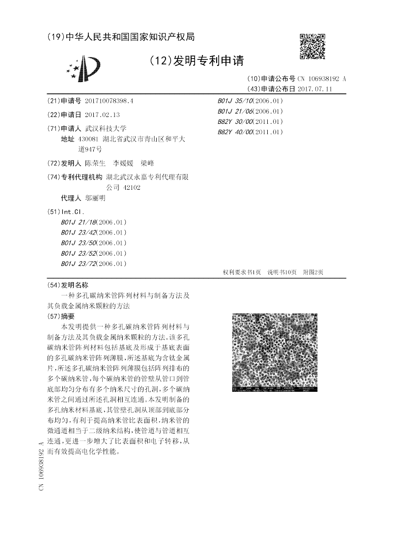 一种多孔碳纳米管阵列材料与制备方法及其负载金属纳米颗粒的方法