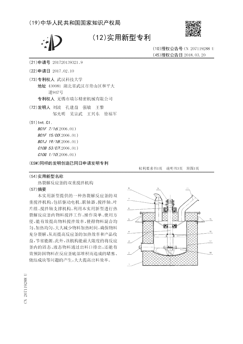热裂解反应釜的双重搅拌机构