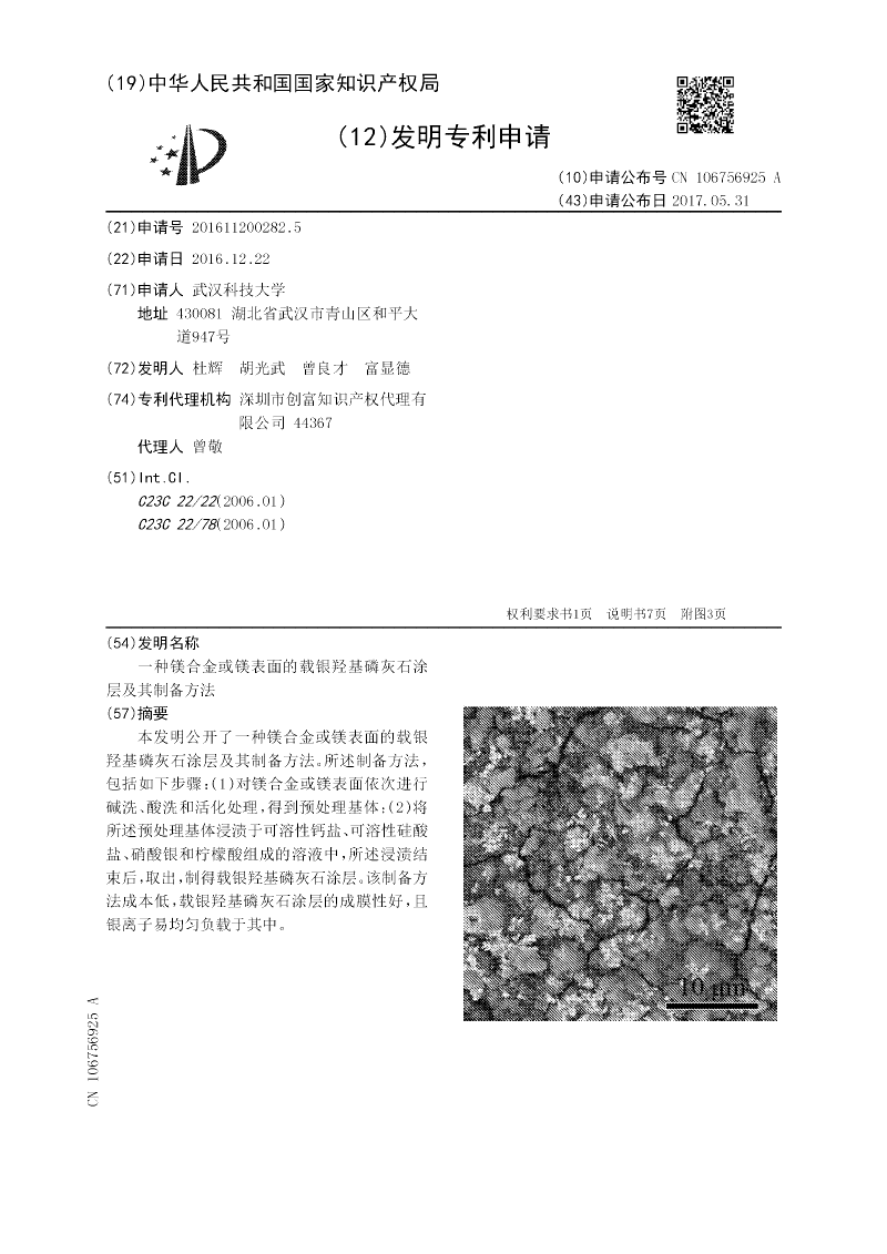 一种镁合金或镁表面的载银羟基磷灰石涂层及其制备方法