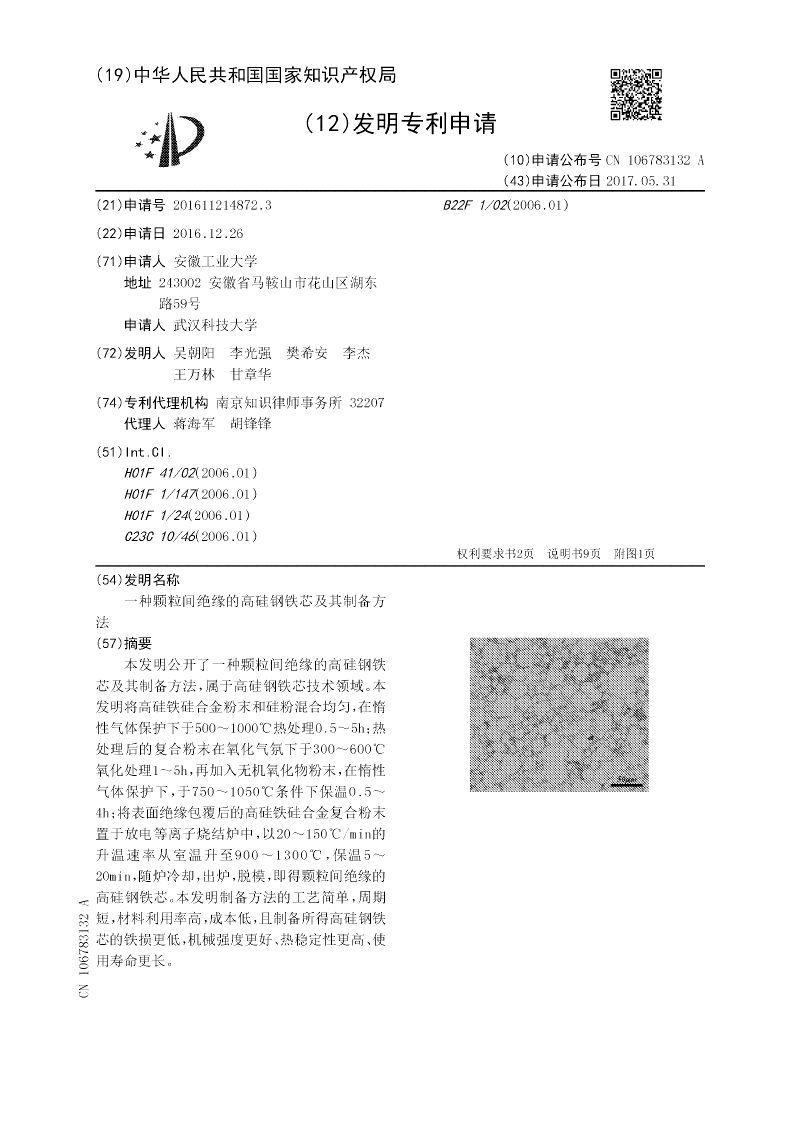 一种颗粒间绝缘的高硅钢铁芯及其制备方法