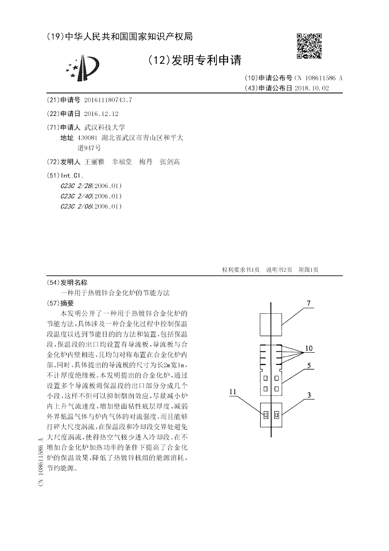 本发明公开了一种用于热镀锌合金化炉的节能方法,具体涉及一种合金化过程中控制保温段温度以达到节能目的的方法和装置,包括保温段,保温段的出口均设置有导流板,导流板与合金化炉内壁相连,且均匀对称布置在合金化炉内部。同时,具体提出的导流板的尺寸为长2m宽1m,不计厚度绝缘板。本发明提出的合金化炉,通过设置多个导流板将保温段的出口部分分成几个小段,这样不但可以抑制烟囱效应,尽量减小炉内上升气流速度,增加壁面粘性底层厚度,减弱外界低温气体与炉内气体的对流强度,而且能够打碎大尺度涡流,在保温段和冷却段交界处避免大尺度涡流,使得热空气极少进入冷却段。在不增加合金化炉加热功率的条件下提高了合金化炉的保温效果,降低了热镀锌机组的能源消耗,节约能源。
