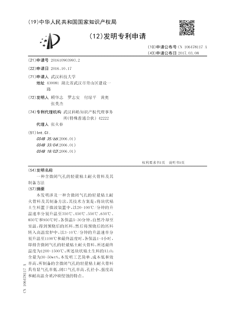 一种含微闭气孔的轻量粘土耐火骨料及其制备方法