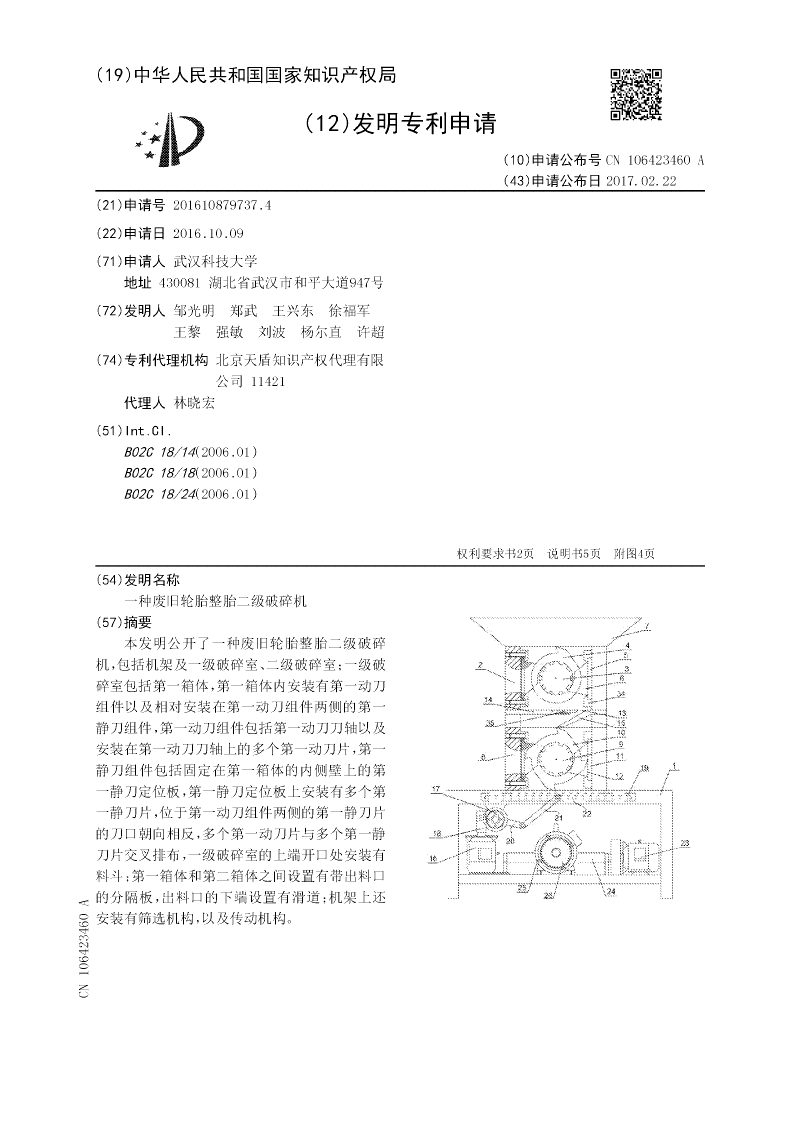 一种废旧轮胎整胎二级破碎机