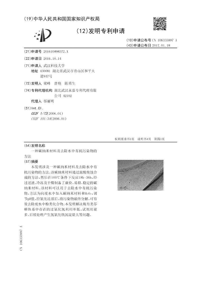 一种碳纳米材料及去除水中有机污染物的方法