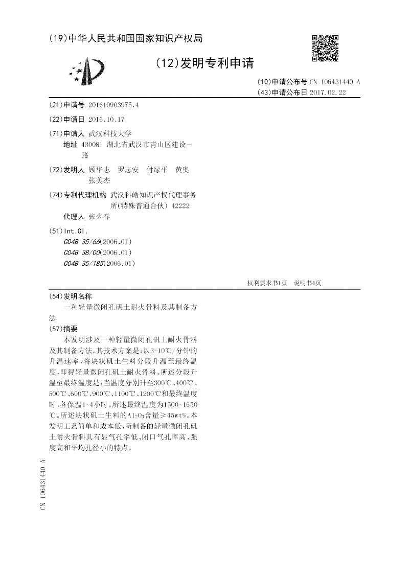 一种轻量微闭孔矾土耐火骨料及其制备方法