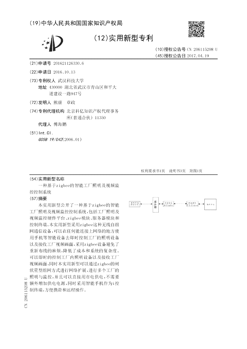 一种基于zigbee的智能工厂照明及视频监控控制系统