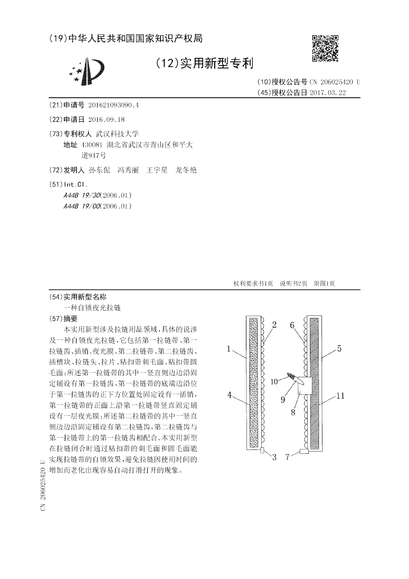 一种自锁夜光拉链