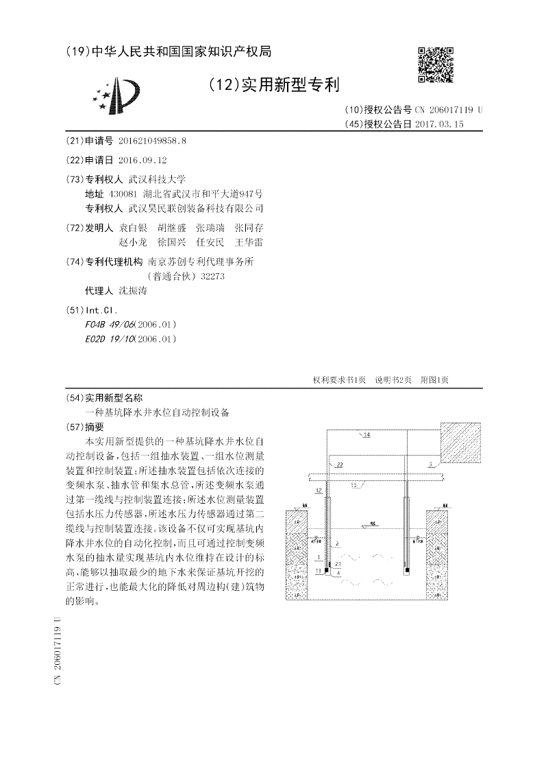 一种基坑降水井水位自动控制设备