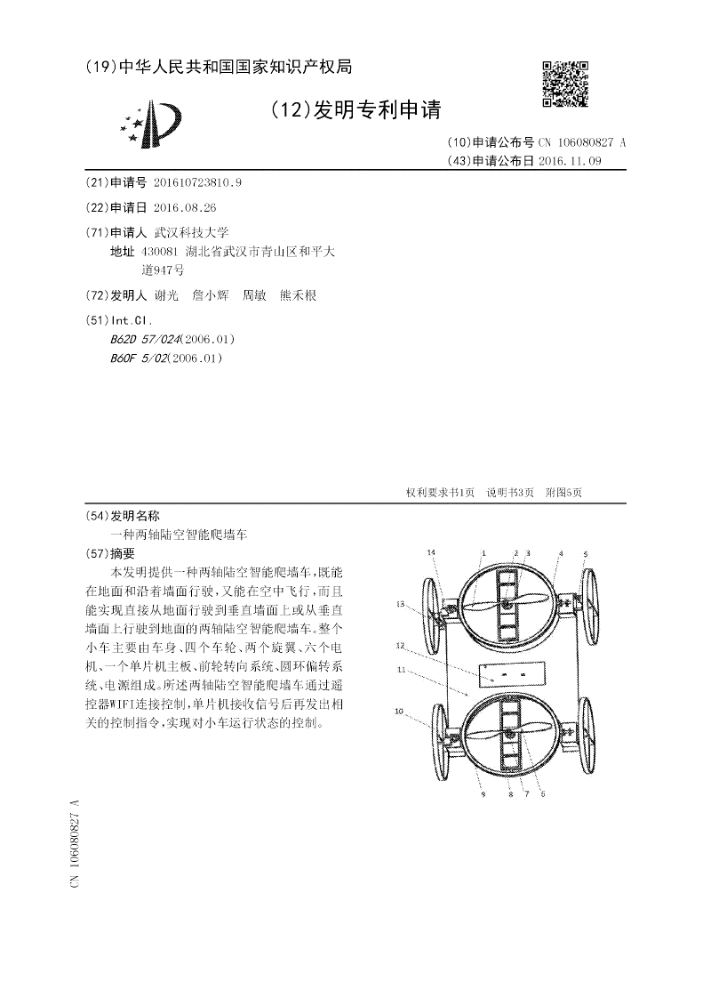 一种两轴陆空智能爬墙车