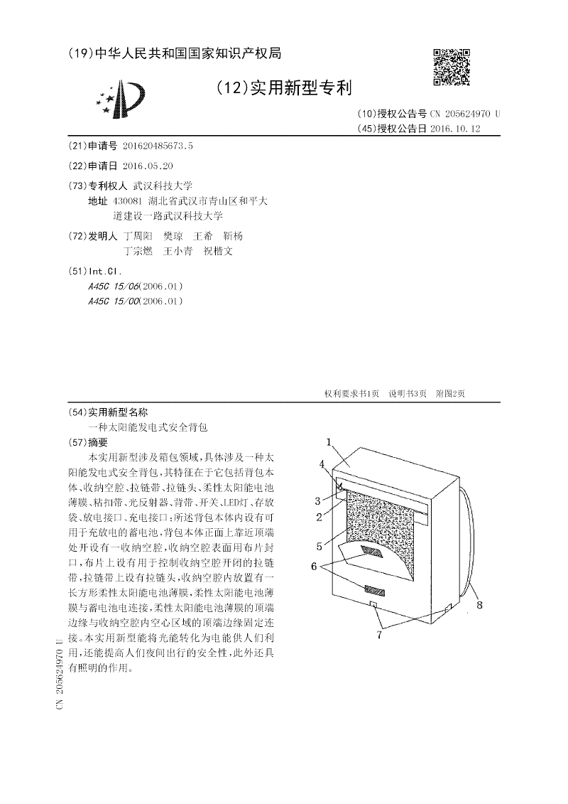 一种太阳能发电式安全背包