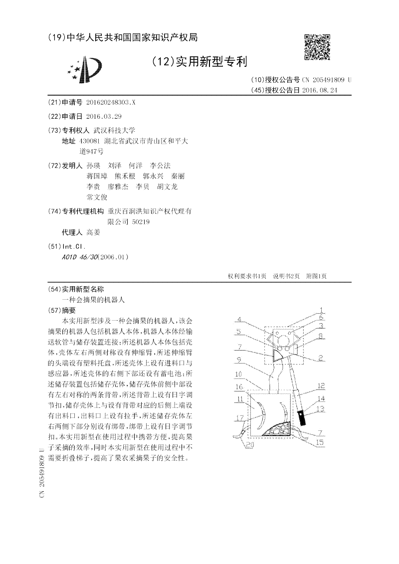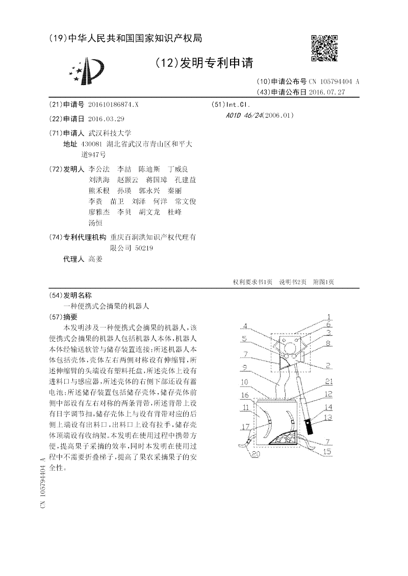 一种便携式会摘果的机器人