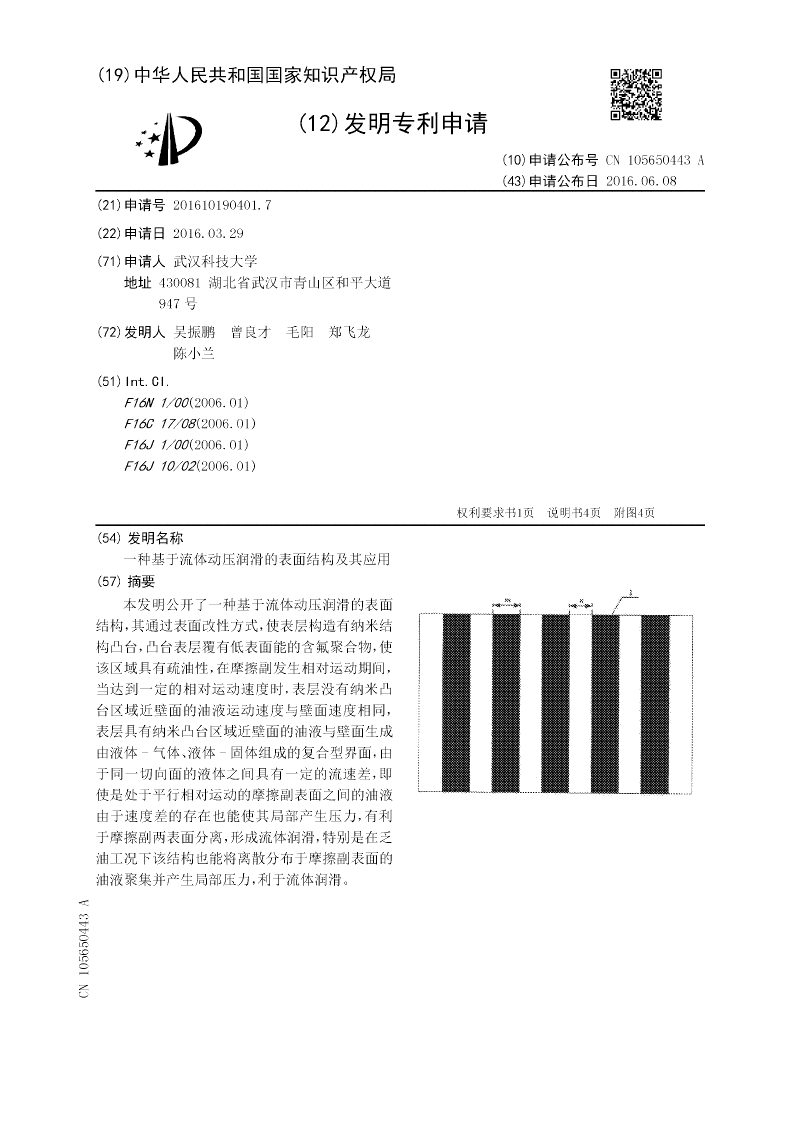 一种基于流体动压润滑的表面结构及其应用