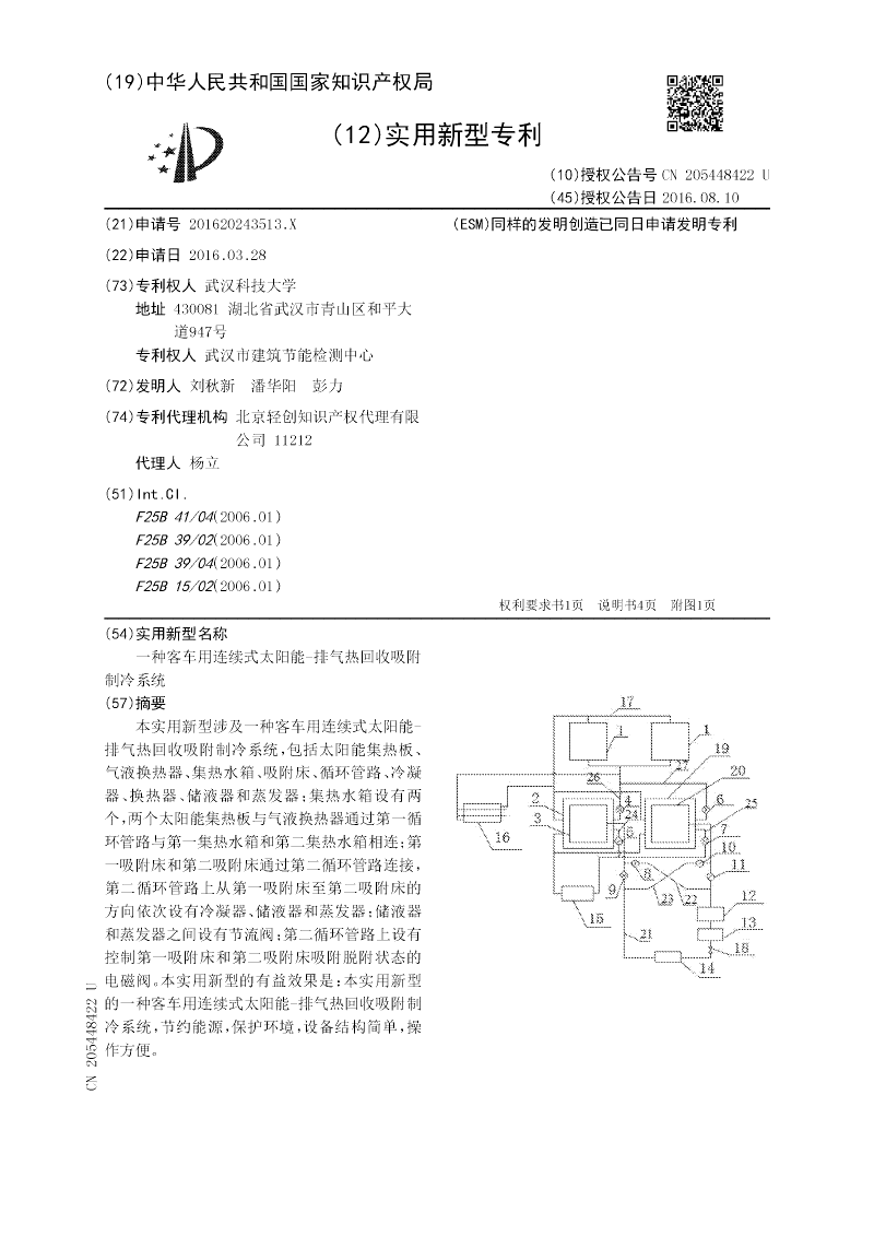 一种客车用连续式太阳能-排气热回收吸附制冷系统