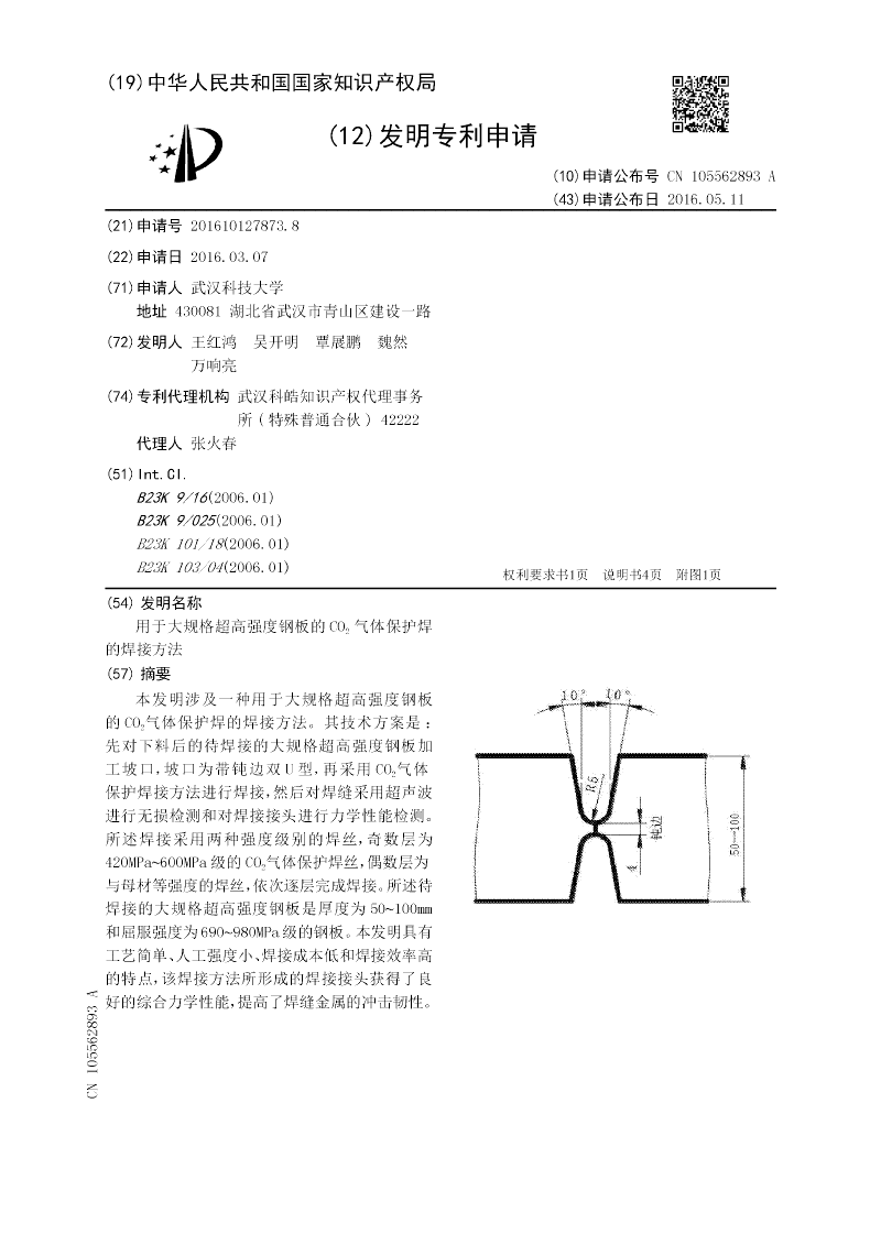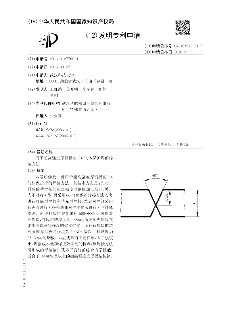 用于大规格超高强度钢板的CO2气体保护焊的焊接方法