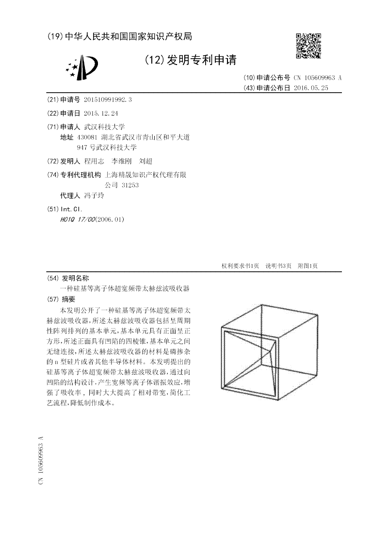 一种硅基等离子体超宽频带太赫兹波吸收器