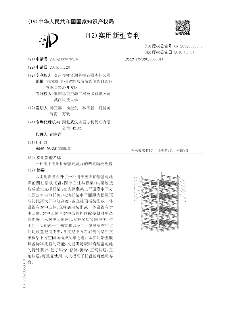 一种用于废旧铅酸蓄电池垛的四柱隔板托盘