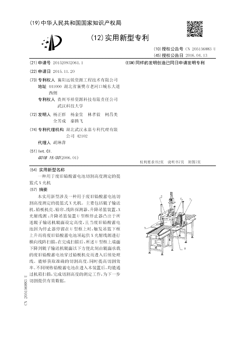 一种用于废旧铅酸蓄电池切割高度测定的提篮式X光机
