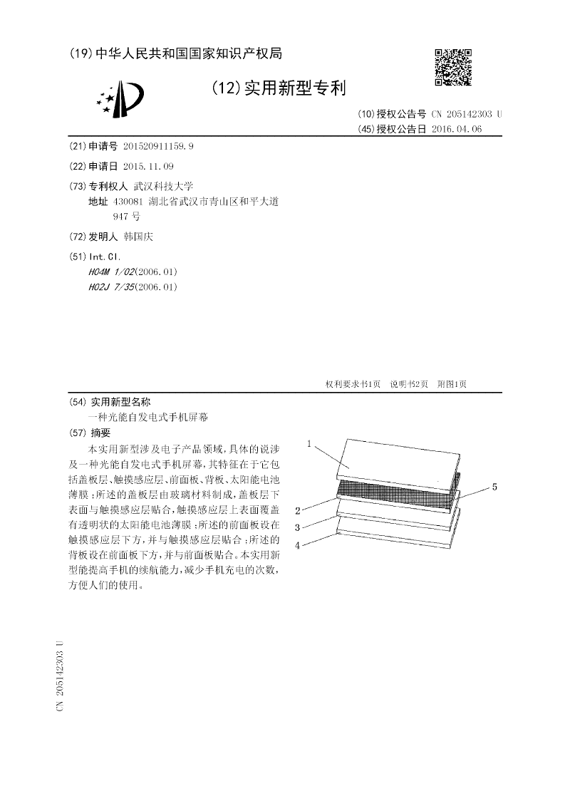 一种光能自发电式手机屏幕