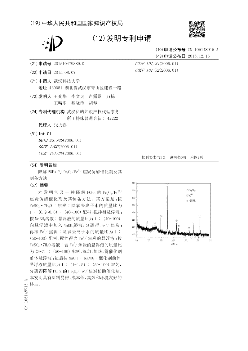 降解POPs的Fe3O4/Fe0/焦炭仿酶催化剂及其制备方法