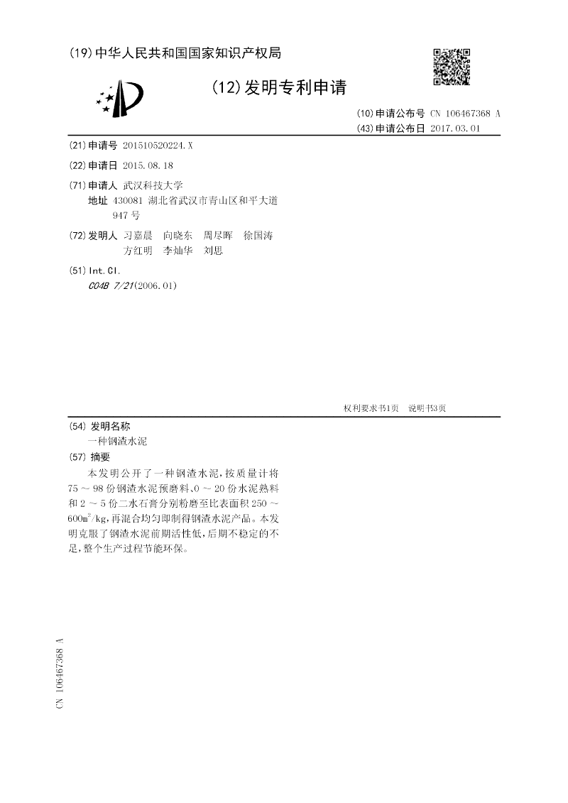 一种钢渣水泥