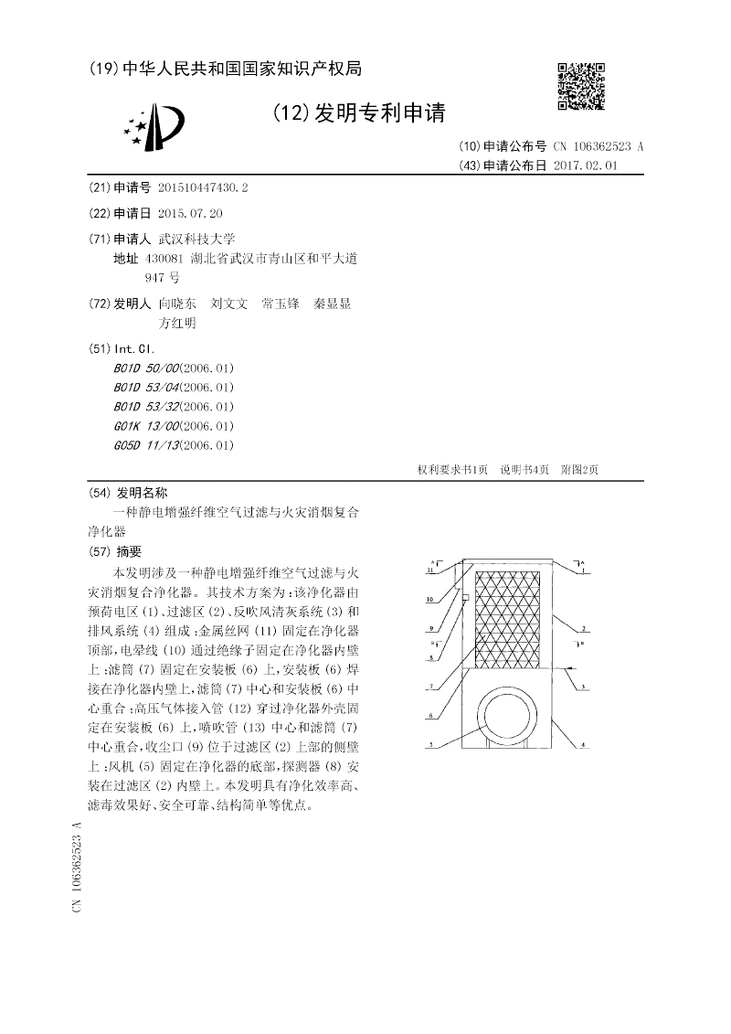 一种静电增强纤维空气过滤与火灾消烟复合净化器