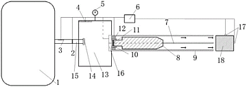 本实用新型涉及一种霍普金森压杆激发装置,包括储气罐、发射储气室、子弹、机械自动气体阀门、气体阀门、发射管道、子弹卡口、单向电磁铁、气压传感器、监控控制装置,储气罐与发射储气室通过连接管道连通;机械自动气体阀门设置在连接管道中;发射储气室开设发射口,发射管道的一端与发射口连通,气体阀门设置在发射口上;子弹卡口设置在发射管道中紧靠发射口的位置,子弹卡口卡和子弹;单向电磁铁靠近子弹卡口设置;气压传感器设置在发射储气室上。该装置能精确控制气压,能自动回收子弹,保证子弹在发射过程中不发生径向偏移,减小子弹在发射过程中的能量损失。