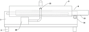 本实用新型公开了一种机械电子工程用机械电子元件清洁装置,包括放置台、支撑腿、透明罩、充气组件、移动台驱动组件、夹紧驱动组件和抽气组件,所述支撑腿设于放置台下壁上,所述移动台驱动组件设于放置台上,所述透明罩设于放置台上壁上,所述移动台驱动组件上端设于透明罩内,所述充气组件设于放置台上,所述抽气组件设于放置台上,所述夹紧驱动组件设于移动台驱动组件上,本实用新型属于机械电子工程清洁技术领域,具体是指一种的机械电子工程用机械电子元件清洁装置。