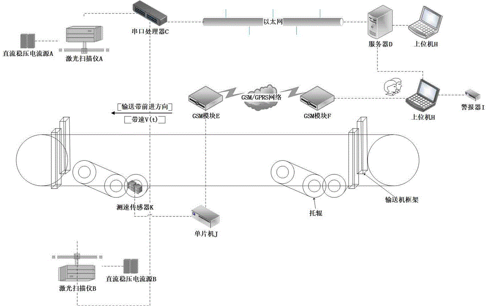 激光扫描的输送带横向跑偏实时检测系统及其检测方法