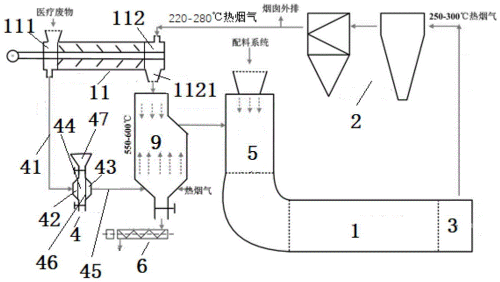 一种利用热烟气低温热解脱氯提质耦合水泥窑协同处置医疗废物的工艺