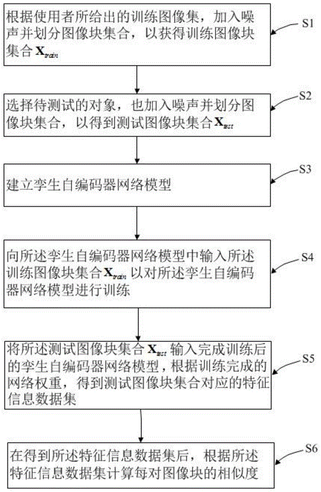 ;S3,建立孪生自编码器网络模型;S4,向孪生自编码器网络模型中输入训练图像块集合X