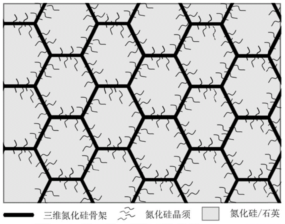 光伏级硅冶炼用氮化硅骨架增强石英基陶瓷及其制备方法