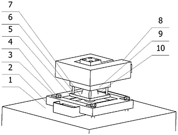 本实用新型公开了一种用于摩擦试验机的下试样夹具装置,包括基座、下试样夹具和下试样;通过加载装置对上试样施加载荷,开展摩擦磨损试验,通过沿长度方向平移下试样,或者调整夹具的装夹位置,实现沿下试样的长度和宽度方向多工位试验。当在下试样的上表面开展了若干次试验,不再有新的可用区域时,则通过铣削去除下试样上表面一定厚度的材料,从而在新的表层继续开展试验,能够节约试验成本,提高试验效率,下试样夹具双层阶梯凹槽能够避免对下试样上表面造成挤压损伤。