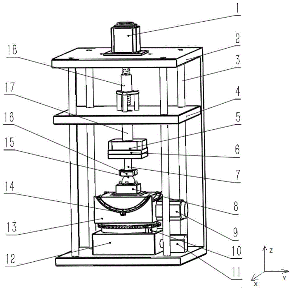 本发明提供一种多功能摩擦磨损试验装置及其操作方法,利用旋转工作台和角位移工作台分别作为球形下试样相对于块状上试样发生扭动和转动的驱动的装置。基于计算机测控系统,闭环控制旋转工作台和角位移工作台启、停和运动幅度,实现上下试样之间发生纯扭动微动、纯转动微动、纯扭动滑动、纯转动滑动、扭转复合微动、扭转复合滑动等6种不同的运动模式;通过加装润滑筒和气罩,实现摩擦副润滑条件和环境气氛的控制。可以很好地模拟人体及工业应用中摩擦界面间复杂的工况条件,满足开展不同运动模式和工况条件下摩擦磨损研究的需要。