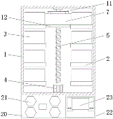 本实用新型公开了智能存取一体化鞋柜,属于智能家具,该智能存取一体化鞋柜,包括柜体,所述柜体内腔的两侧均固定连接有第一支撑板,所述第一支撑板的顶部设置有放置箱,所述柜体的内部固定连接有电机,且电机的转轴固定连接有丝杆,所述丝杆的表面螺纹连接有第一固定块,且第一固定块的正面固定连接有连接板。本实用新型通过柜体和第一支撑板,达到放置放置箱的效果,通过放置箱,达到放置鞋子的效果,通过丝杆和第一固定块,达到对连接板位置调节的效果,通过齿轮和链条,达到对第二固定块和夹板位置调节的效果,通过夹板,达到带动放置箱移动的效果,该鞋柜方便对鞋子进行存取,方便人们进行使用。