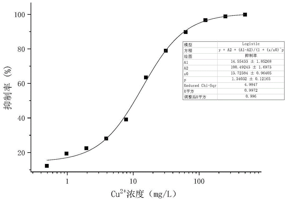;(5)生物毒性计算:根据发光强度计算发光抑制率,选择适当的函数模型,计算单一的污染物质对发光细菌急性毒性的EC
