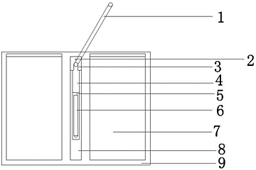 本发明公开了一种便携式高效大气采样器的装置,包括三个主要部分,分别是采样部份:由采样头、压盖、滤膜夹、流量计组成;抽气装置:由两级离心风机串联而成,有较高的负压,能满足测尘的需要,是采样器的核心部分;动力部分:每级风机都用电机驱动,电机运转的动力直接连接电源。本设计通过在安装板上设置抽气泵、流量计、主抽气管、支抽气管、气泡瓶、升降支脚、中间安装板、支抽气管、铰接安装板以及管体套的方式,达到多个房间的空气采样操作一次性完成的效果。本发明具有进气采样结构合理有效、稳定性高、易拆装、便于携带,采样操作简单快捷,采样高度灵活可调,以及一次抽气多处同时采样效果好、代表性高的优点。