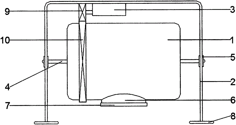 本发明公开了一种路桥修筑用混凝土搅拌设备,涉及建筑设备领域,该路桥修筑用混凝土搅拌设备包括支撑架,支撑架设有两底座,支撑架两侧镶嵌有轴承,两轴承内均固定有轴杆,两轴杆中间连接有搅拌桶,搅拌桶侧面连通有螺纹管,螺纹管上配有桶盖,搅拌桶外壁垂直设有一圈环形的被动齿圈,支撑架上部安装有电机,电机的输出转轴上安装有主动齿轮,主动齿轮与被动齿圈相互啮合。该路桥修筑用混凝土搅拌设备设计简单,工作稳定性良好,而且无需顶起搅拌桶卸出水泥混凝土,节省了电能。