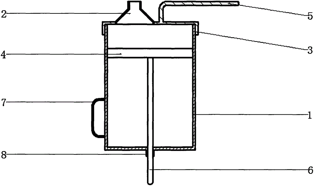 本发明公开了一种建筑桥梁加固高效施工设备,涉及建筑工具领域,该建筑桥梁加固高效施工设备包括储浆桶,储浆桶设有套管,套管内插有伸缩杆,伸缩杆一端设有活塞,储浆桶开口处配有桶盖,桶盖顶部设有浇筑管和抹平板,储浆桶外壁设有提手。该建筑桥梁加固高效施工设备可以高效地完成灌水泥填缝和抹平水泥的施工工序,操作起来非常方便,适合修补桥梁底部的裂缝,操作起来效率高。
