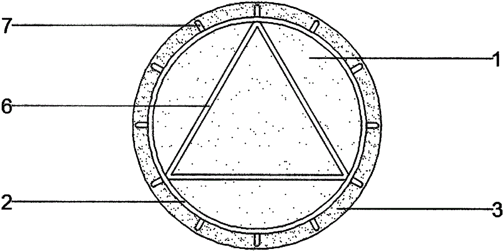本发明公开了一种FRP混凝土组合柱,涉及建筑设备领域,该FRP混凝土组合柱包括支撑管,支撑管内部设有若干支撑架,支撑管外壁设有若干延伸板,支撑管内部填充有内柱体,支撑管外部和延伸板包裹有外柱体,支撑管底部设有底座,支撑管顶部设有若干横梁连杆。该FRP混凝土组合柱不仅解决钢筋混凝土建筑物中钢筋被腐蚀而失效的问题,而且可以提高柱体的强度,能够让柱体与地面和横梁的连接更加稳固。