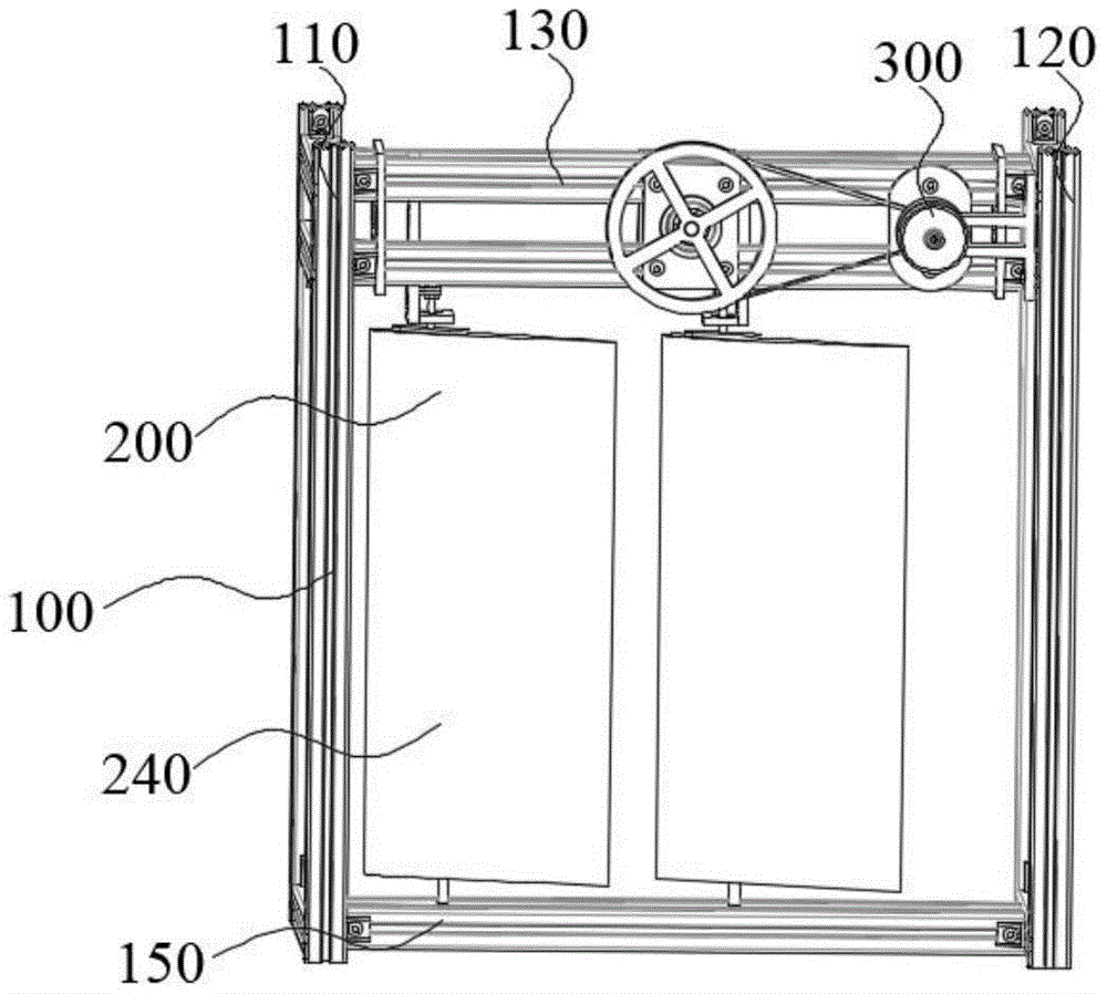 本实用新型提供一种基于棘轮传动的扑翼式发电装置,包括机架、发电机构和输出机构,机架上设有第一滑轨和滑动装置,滑动装置底部设有扑翼,滑动装置包括滑动架、上齿条和下齿条,发发电机构包括转动轴、第一齿轮棘轮组件和第二齿轮棘轮组件,转动轴安装在滑轨上并设在上齿条和下齿条间,第一齿轮棘轮组件包括与上齿条啮合的第一齿轮、第一棘轮和第一棘轮芯,第一棘轮芯上设有第一棘爪,第二齿轮棘轮组件包括与下齿条啮合的第二齿轮、第二棘轮和第二棘轮芯,第二棘轮芯上设有第二棘爪,第一棘轮芯和第二棘轮芯套在转动轴上,输出机构包括发电机,转动轴带动发电机转动进行发电,利用扑翼的扑动运动捕捉流体动能,高效率、高适应性及高稳定性。