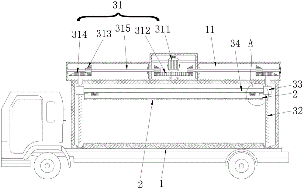 本实用新型公开一种物流运输用集装箱,包括箱体、限位板以及安装在所述箱体顶部的驱动装置,所述驱动装置的驱动端位于所述箱体内,所述限位板水平设置在所述箱体内,且与所述驱动装置的驱动端传动连接,所述驱动装置用以驱动所述限位板在所述箱体内上下移动。本实用新型所述集装箱内的限位板可对其内部的货物进行定位和固定,避免货物在运输汽车颠簸时移位甚至跌落,保证集装箱运输的可靠性。