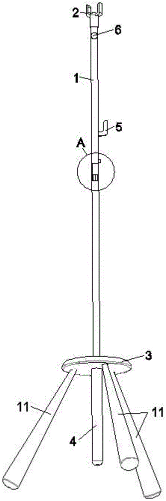 本实用新型涉及一种可发光的多功能挑衣杆,包括主杆、叉头和底座,主杆竖直安装在底座上,其下端与底座可拆卸连接;叉头可拆卸的安装在主杆的上端,主杆上还固定安装有用于悬挂衣物的悬挂机构。本实用新型的有益效果是结构简单,既可以用于收取衣物,也可以立住用于悬挂衣物,功能多样;而且,其还具有照明功能,便于在夜晚或光线较暗的时候收取衣物,使用非常方便。