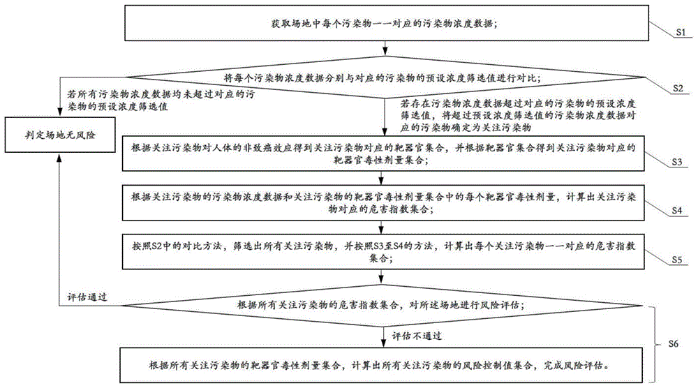 本发明涉及一种基于靶器官分类的风险评估方法、系统和存储介质,获取每个污染物的污染物浓度数据;将每个污染物浓度数据分别与对应的预设浓度筛选值进行对比,若均未超过预设浓度筛选值则判定场地无风险;若存在污染物浓度数据超过对应的预设浓度筛选值,则将该污染物确定为关注污染物,筛选出所有关注污染物并计算出每个关注污染物对应的危害指数集合;根据所有关注污染物的危害指数集合对场地进行风险评估,若评估通过则判定所述场地无风险;若评估不通过,则根据所有关注污染物的靶器官毒性剂量集合,计算出所有关注污染物的风险控制值集合。本发明基于靶器官分类,更详细地反映各污染物对人体健康的危害情况和用于修复行动的风险控制值。