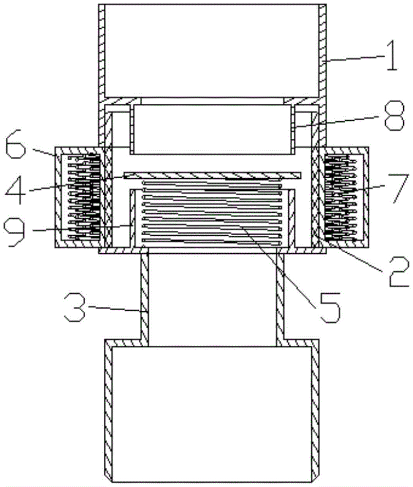 本实用新型涉及一种用于气路意外状况保护的保护阀,包括两端均敞口且同轴设置的上腔体、中腔体和下腔体,中腔体的上下两端分别与上腔体的下端和下腔体的上端可拆卸连接;中腔体内水平安装有密封端盖,密封端盖可上下移动;上移密封端盖至其与上腔体的下端贴合,以封住上腔体,或下移密封端盖至其与下腔体的上端贴合,以封住下腔体。本实用新型的有益效果是结构简单,实现保护阀在高压或断电的情况下气路的通断,保证整个装置正常运行,安全可靠。