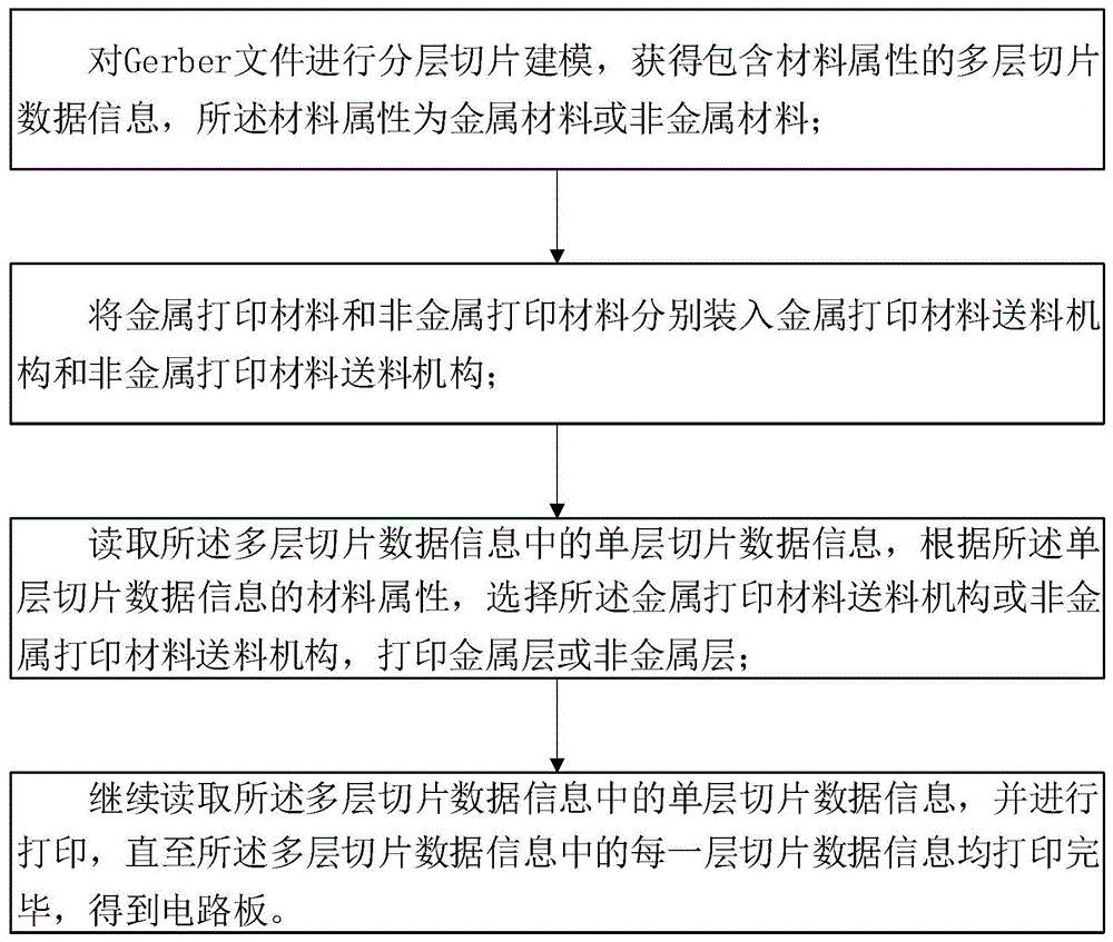 本发明公开了一种3D打印电路板的方法,包括,对Gerber文件进行分层切片建模,获得包含材料属性的多层切片数据信息;将金属打印材料和非金属打印材料分别装入金属打印材料送料机构和非金属打印材料送料机构;读取多层切片数据信息中的单层切片数据信息,打印金属层或非金属层;继续读取多层切片数据信息中的单层切片数据信息,并进行打印,直至多层切片数据信息中的每一层切片数据信息均打印完毕。本发明避免了制作电路板需要钻孔、电镀等复杂工艺,方便进行小批量、个性化、自动化的电路板定制,缩短了制作周期。本发明还包括一种3D打印电路板的系统和3D打印机。