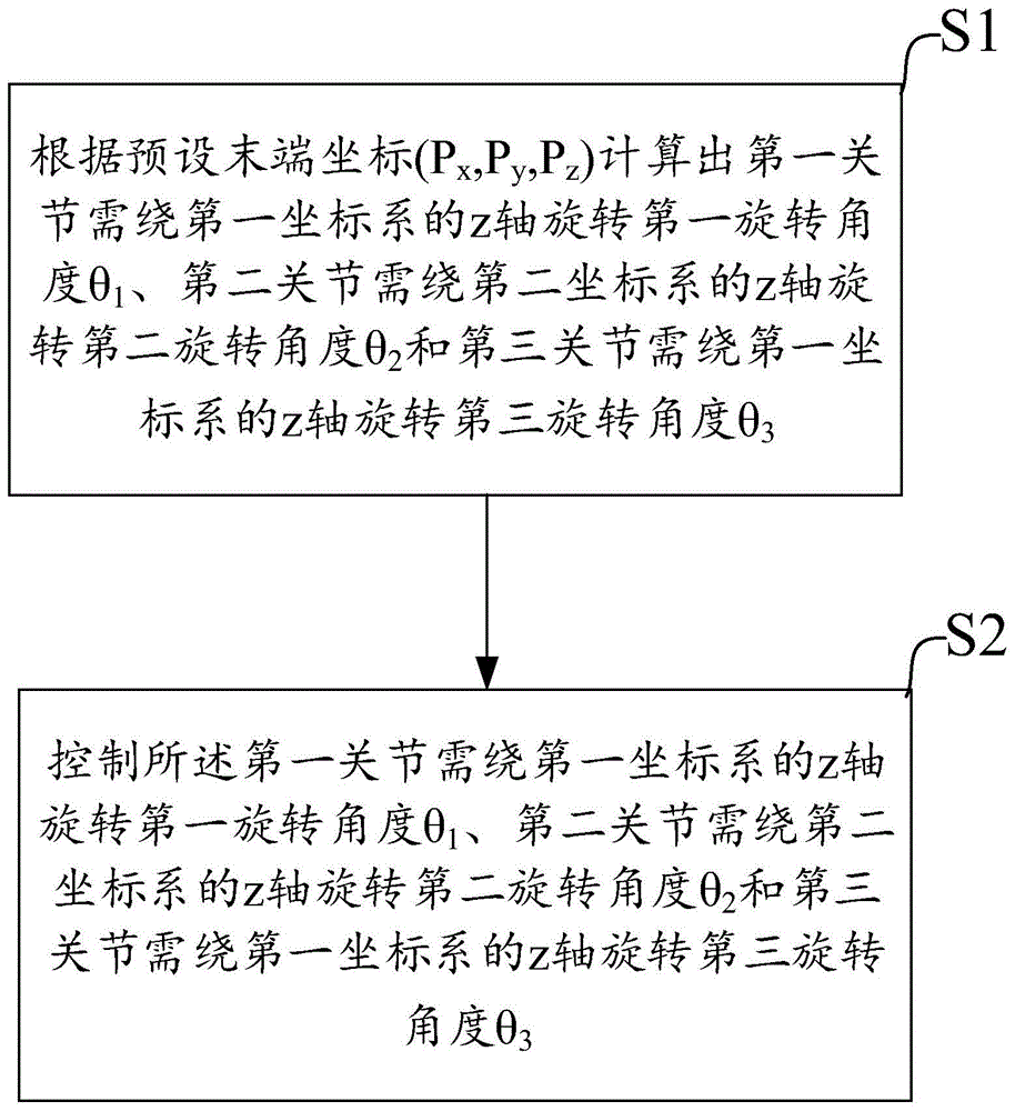 ,然后控制所述第一关节绕第一坐标系的z轴旋转第一旋转角度θ