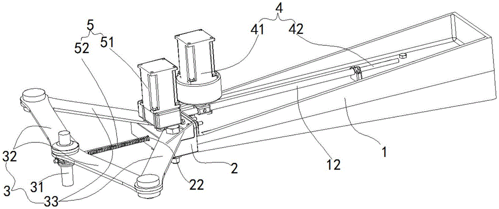 本实用新型公开了一种伸缩式机械臂,包括支撑臂、第一伸缩臂、第二伸缩臂、第一驱动件和第二驱动件,所述支撑臂水平设置,所述第一伸缩臂滑动安装在所述支撑臂上,所述第二伸缩臂滑动安装在所述第一伸缩臂上,所述第一驱动件安装在所述支撑臂上,其驱动端与所述第二伸缩臂传动连接,其用以驱动所述第一伸缩臂在所述支撑臂上滑动,所述第二驱动件安装在所述第一伸缩臂上,其驱动端与所述第二伸缩臂传动连接,其用以驱动所述第二伸缩臂在所述第一伸缩臂上滑动。其结构简单,伸缩方便且其伸缩范围可控,由第一驱动件驱动所述第一伸缩臂相对于支撑臂移动,而由第二驱动件驱动所述第二伸缩臂在第一伸缩臂上行移动,如此使得整个机械臂的移动轨迹广。