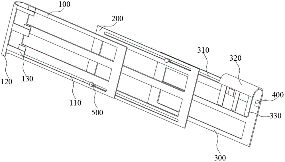 本实用新型提供一种学生床架安全护栏装置,包括第一护栏、第二护栏和第三护栏,第一护栏下部设有长条形的第一通孔,第一护栏的一侧设有第一弧形卡件,第一弧形卡件的外侧设有多个贴有魔术贴第一卡条,第二护栏下部设有长条形的第二通孔,上部设有长条形的第三通孔,第三护栏上部设有长条形的第四通孔,第三护栏的顶部设有第二弧形卡件,第二弧形卡件的外侧设有多个贴有魔术贴的第二卡条,第一护栏和第二护栏通过穿过第一通孔和第二通孔的滑动件相连接,第一护栏和第二护栏通过穿过第一通孔和第二通孔的滑动件连接,使得第一护栏和第二护栏相对滑动,第二护栏和第三护栏相对滑动,本装置安拆简单,方便使用,增加了学生床的安全性。