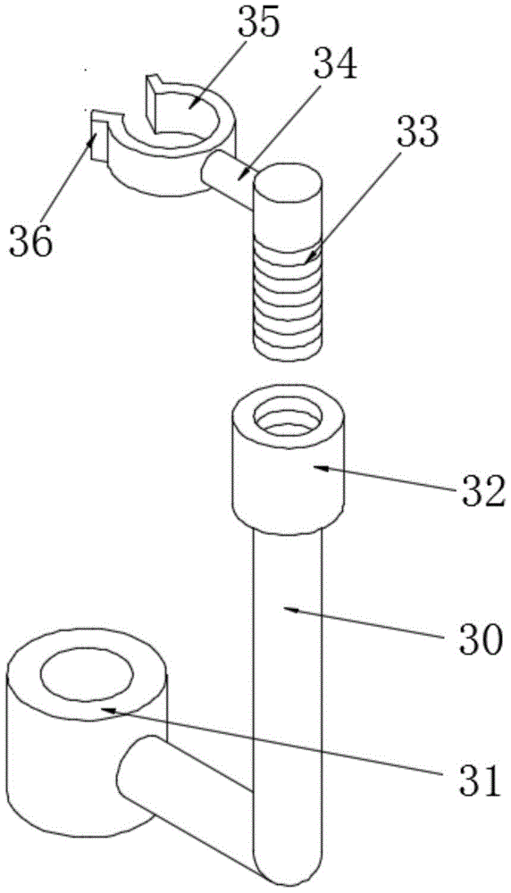 本实用新型涉及连接管技术领域,具体地说,涉及一种两瓶药液之间稀释的连接管,包括连接管,连接管的两端均粘接有瓶塞穿刺针,连接管上位于其中一个瓶塞穿刺针处设有排气管;排气管上设有固定夹,固定夹包括第一夹块和第二夹块,第一夹块的一侧外壁上设有半圆形凸块,半圆形凸块与第一夹块为一体成型结构,第一夹块靠近半圆形凸块的一侧外壁位于四个拐角处均粘接有导向柱,导向柱的末端粘接有限位块,第一夹块靠近半圆形凸块的一侧外壁上还粘接有两个插杆,第二夹块的靠近第一夹块的一侧外壁上开设有半圆形槽,该两瓶药液之间稀释的连接管,设有排气管,能够有效的保证药液正常的流通。